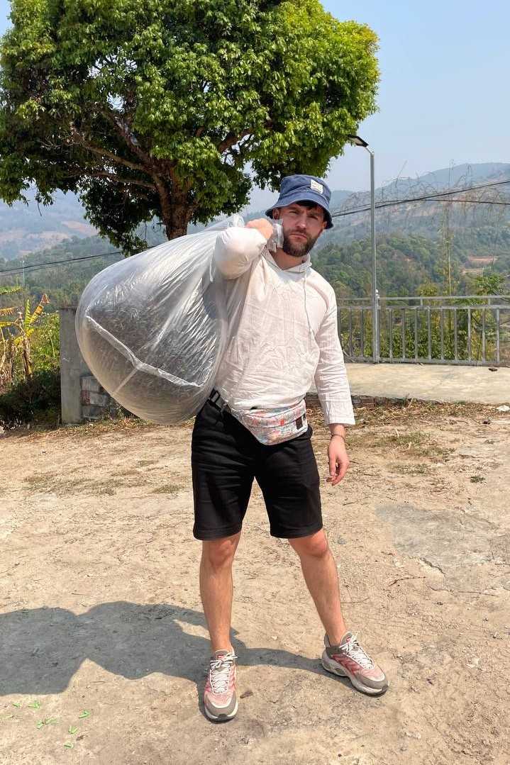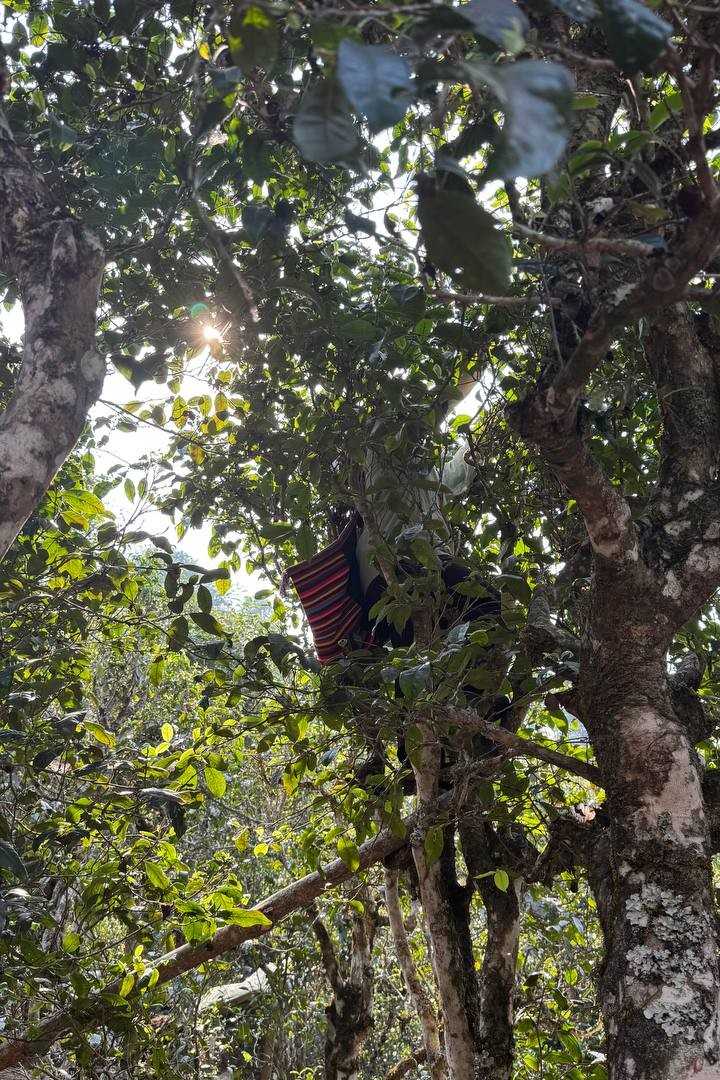 Так вот деревья здесь настолько высокие, что чтобы собрать с них урожай свежего чая, сборщикам приходится буквально взбираться на них. Чаще всего они прикладывают к стволу бревно и упирают в более менее надежную ветку (бревно, кстати, приходится таскать с собой от дерева к дереву), после чего взбираются к макушке чайного дерева. И так весь день. Твой заработок зависит от количества чая, которое ты собрал.