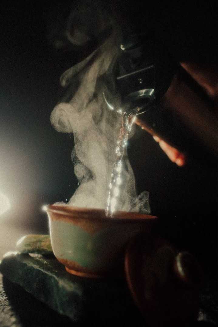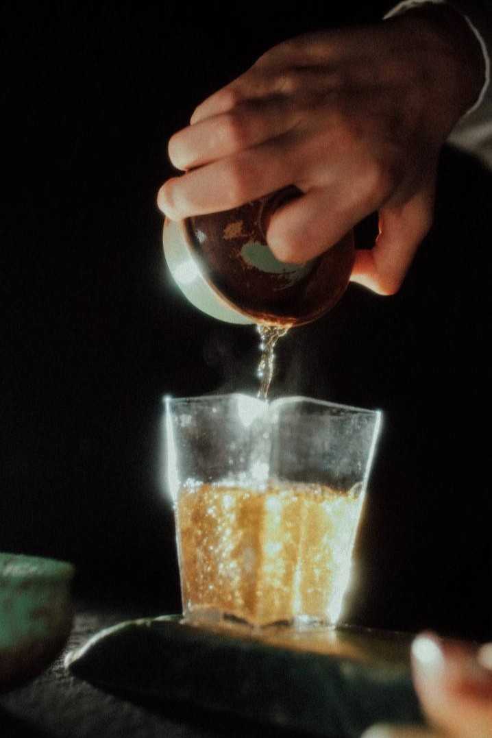 - Первый пролив: снова заливай воду и настаивай 10 секунд. Считаем от момента прикосновения воды к чаю. Сливай в чахай и разливай по пиалам. Первый пролив — самый нежный и цветочный.