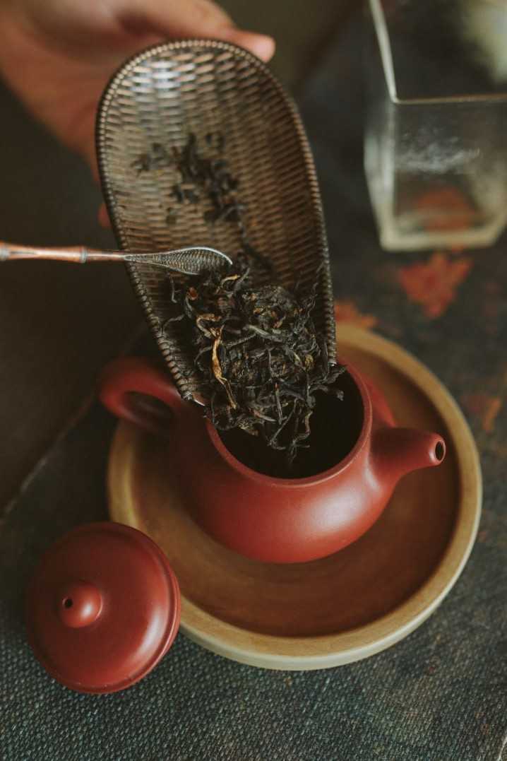 - Засыпь листья. Примерно 4–6 г красного чая (пара чайных ложек). Если в сырье больше почек, то бери побольше, а если чай состоит в основном из листьев, то можно взять 4 грамма.