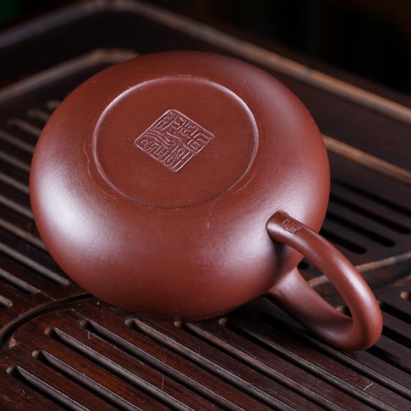 Прекрасно притертая прижимающая (压盖 yagai) крышечка с шаровидной (球形钮 qiu xing niu) пуговкой. Водяной замок присутствует.